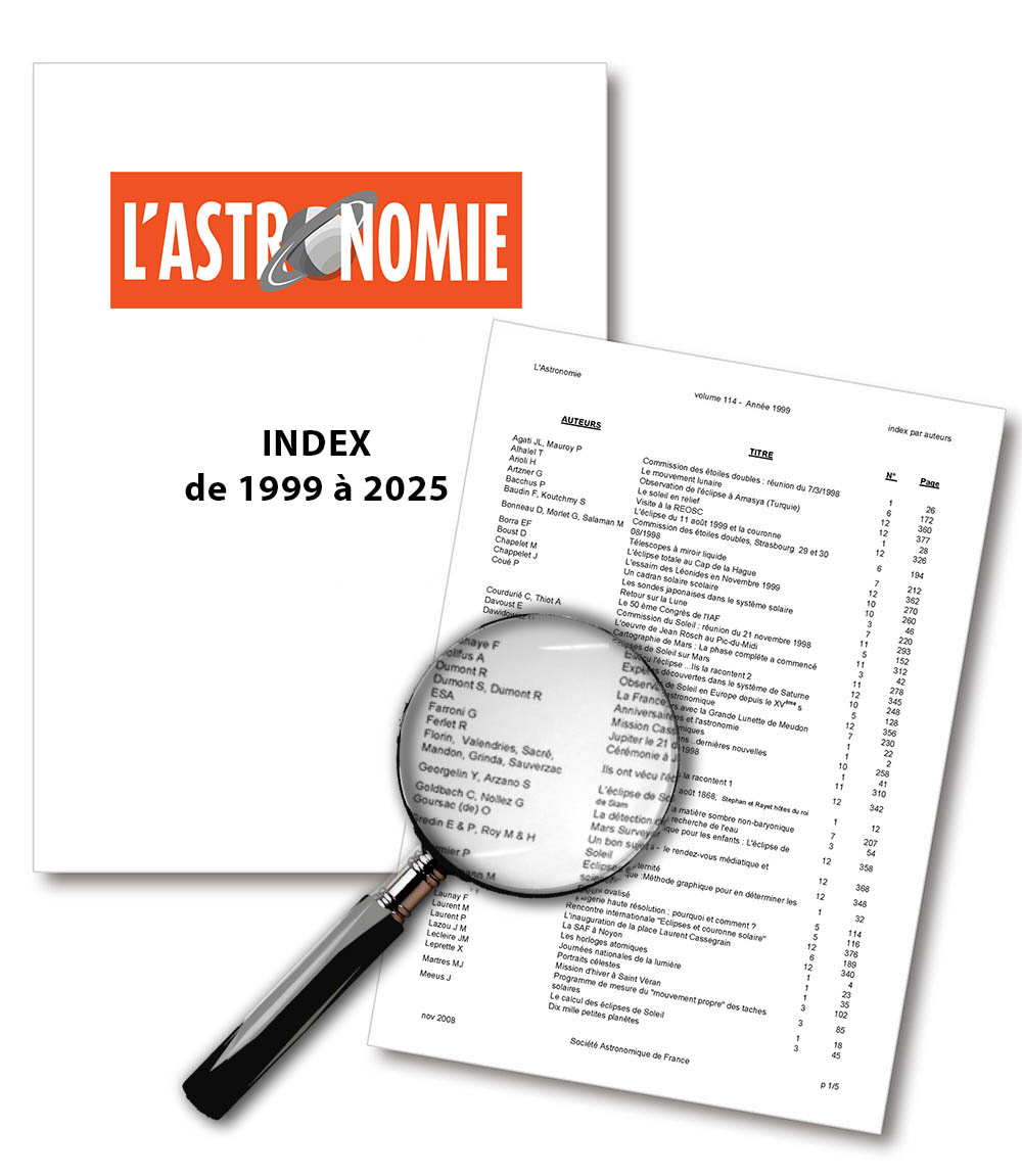 Pour retrouver des articles de l’Astronomie, il faut taper LAstr dans le moteur de recherche et, éventuellement, y ajouter des options (auteurs, mots-clés…).